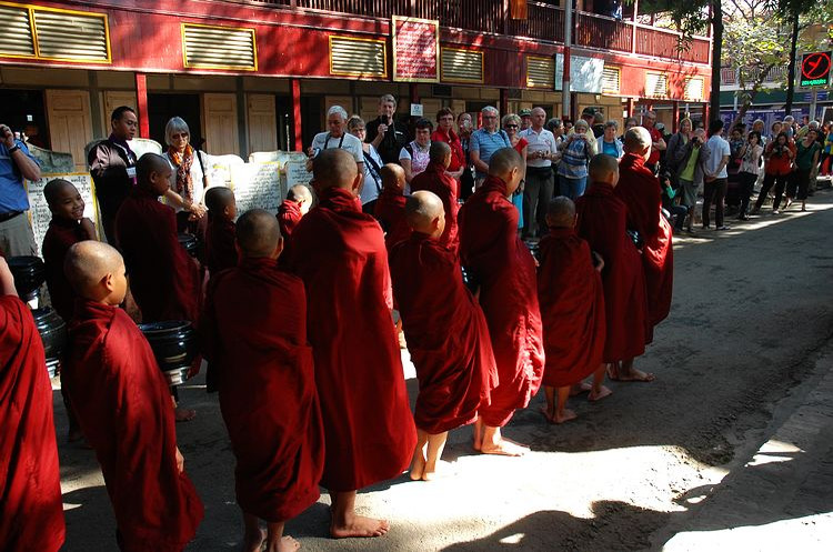 马哈刚大勇僧院(MahagandhayonMonastery):这是一家仅仅建立了5 0多年,却拥有全国最多的僧人,年龄从12岁的小沙弥到65岁的大住持。僧院内的每日餐食均由信徒供奉,甚至还有远在台湾的虔诚信徒。