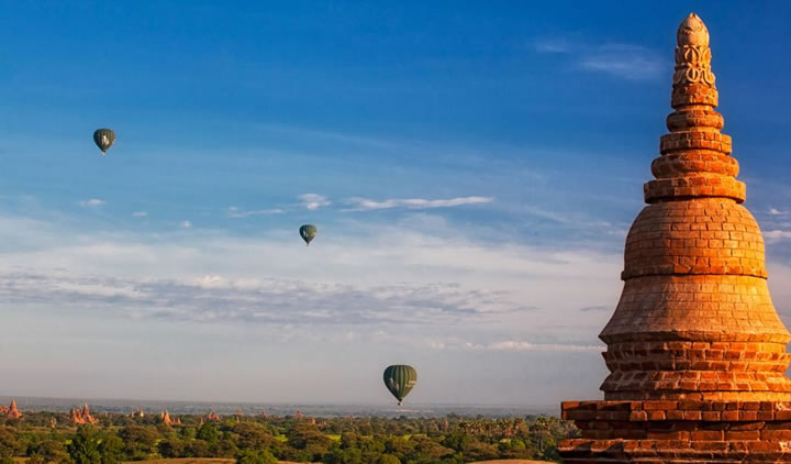 迎着温暖的曙光,搭乘热气球,俯瞰分布在蒲甘平原上的数千座佛塔。这样的圣洁和宁静,是缅甸带给你的值得一生铭记的场景。