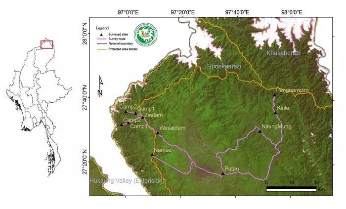 在Hponkanrazi 野生动物保护所南部、Hkakaborazi 国家公园南面的村庄和葡萄镇周边进行调查。其间的风餐露宿,艰难险阻固然难免,却也时时碰到震撼心灵、终生难忘的美丽时刻。