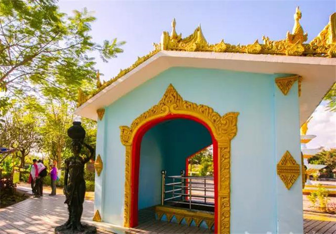 古老原始的水井,由中国的银井寨和缅甸的芒秀寨共同修建,为一寨两国提供源源不断的清泉,也孕育了中缅“胞波”情谊。相传此井又称玉女井,女孩们只要投入井中一玉石,方可打上一桶水,注入用玉石铺满的洗脸台洗一下,就可获得美丽的容颜。