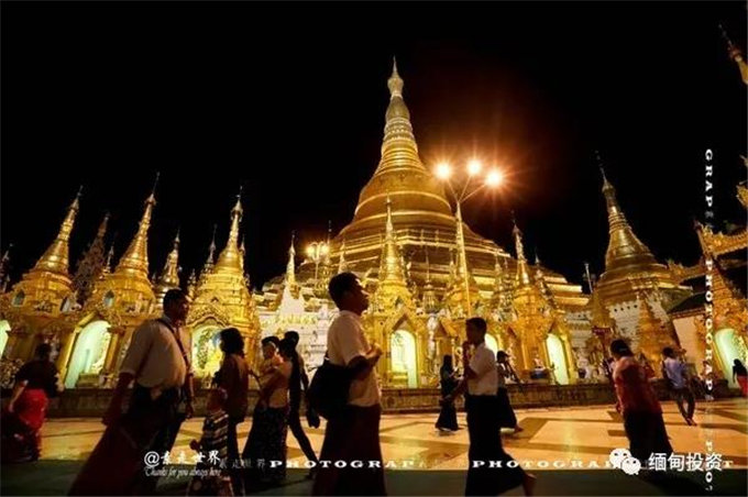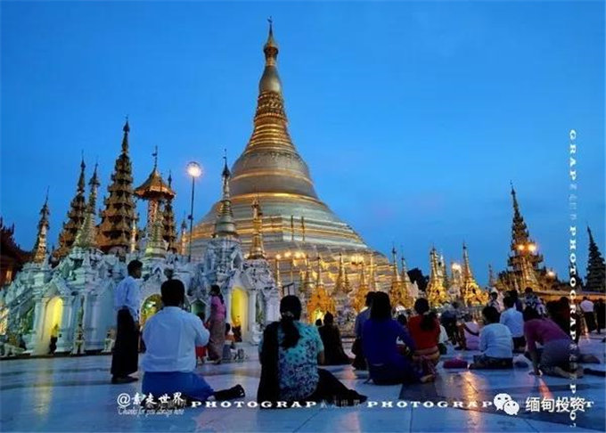 大金塔的夜晚是如此的让人期待,微蓝的天际将夜未夜,钟声已起。信众们危襟正坐地凝视着瑞大金塔,此刻,屏神静息。在湛蓝天地间,仿佛只有经诵声,撞钟声,其它一切扰扰攘攘尽散虚空,心中眼中只有眼前那宏伟金色佛塔在眼前放大,放大,一直放大到无量。