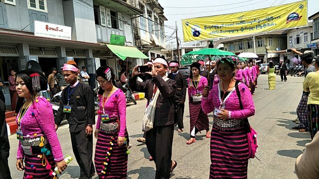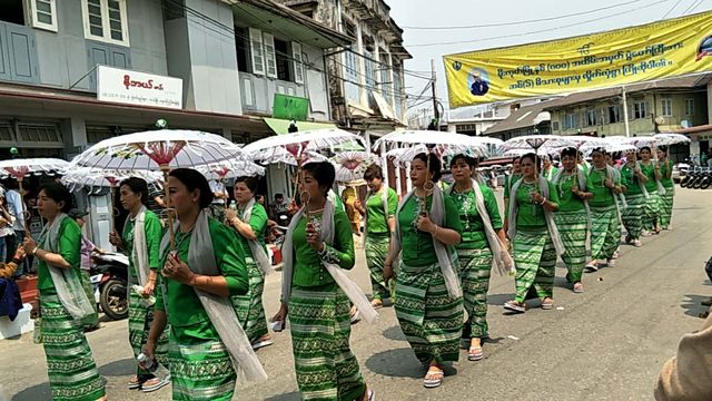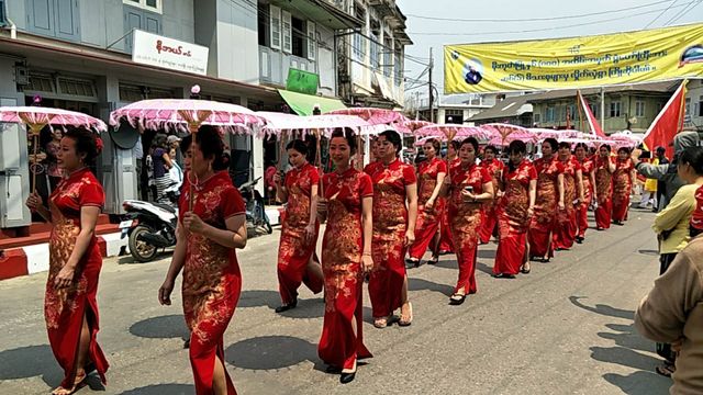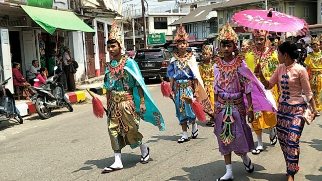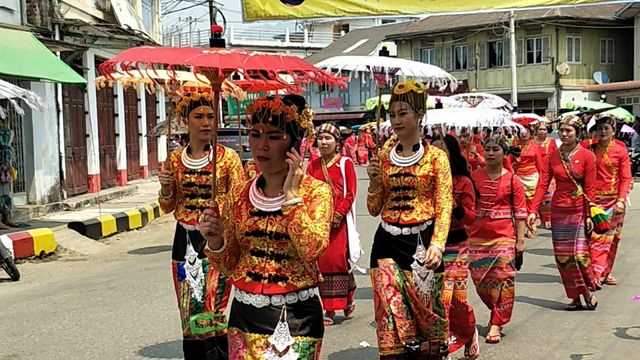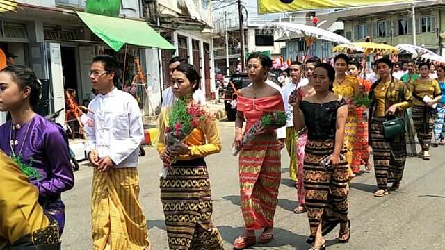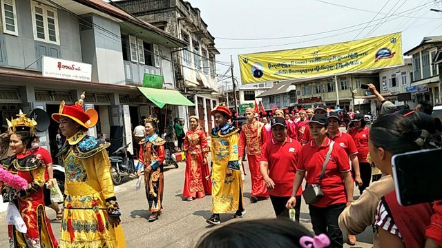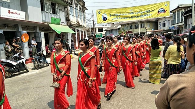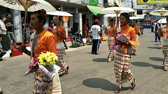 3月24日,抹谷为庆祝建市800年而举行空前壮观的大巡游,全抹谷的各个民族—一缅、掸、傈僳、布朗、钦、回、果敢等民族,还有外来的华人、印度旁杰普人,郭尔额人、锡克人等,都穿着本族最靓丽的盛装参加巡游。可以说,全抹谷的美女、帥哥都出动了。人人精心化妆打扮,服饰鲜艳多彩,还有装饰精美的花车。几千人参加的大巡游,花了两个多小时才走完,而且次序井然,真是盛况空前,令人赞叹不已。我幸运站在很好的位置,用高档手机拍了近200照片,还有不少视频录像,记录下这800年才一遇的难忘时刻。现选几张精彩照片,转发给朋友们分享。