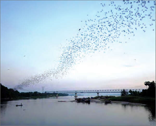 该蝙蝠群对当地的生态环境起着巨大的作用。一个最重要的作用就是无数的农田害虫都是靠这些蝙蝠群来清除,而它们的排泄物又是良好的天然肥料。