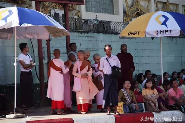 图为:缅甸仰光的街边,除了路人之外,还有不少尼姑和和尚。这个画面在缅甸太正常了,无论什么地方,总可以看看三三两两的出家人,这个也是缅甸为什么被人们称为佛教国家之一,他们的男子可能一辈子会到寺庙一次甚至更多,而缅甸尼姑的地位就远远不如和尚了,据说是出家之后,就不允许还俗。