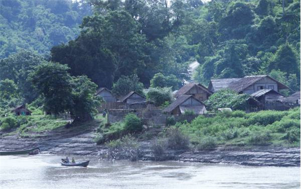 江畔朴素的民居仍然保留了缅甸传统的“干栏式”高脚屋的形态