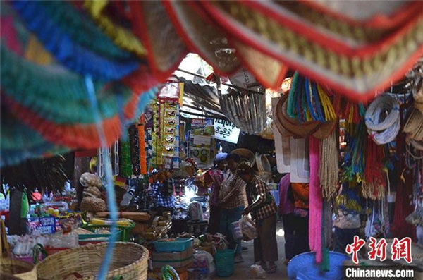 图为缅甸蒲甘集市内,人们挑选商品。中新社记者 缪超 摄