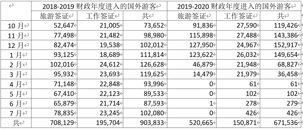 而本财政年度前几个月进入的游客人数与上一财政年度同期相比如下: