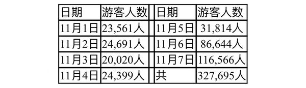 在这11月份的第一周内每天前来朝拜此大金塔的游客人数如下表: