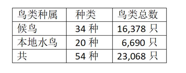 2022年12月底在茵都基湖内统计到的鸟类品种及总数: