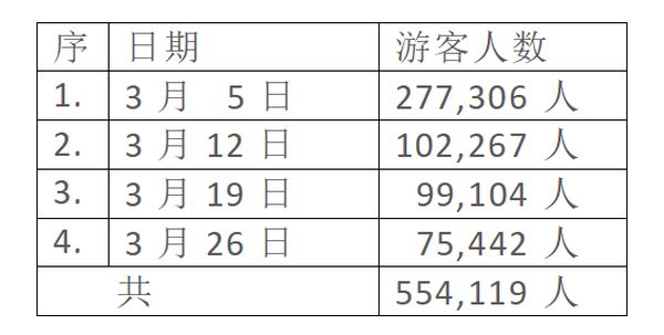 在这期间每天进入佛塔的礼佛民众至少有2万多人,属于公共假日的日子中进入朝拜此佛塔的民众就更多了。3月份内的4个星期天,3月5日、3月12日、3月19日及3月26日进入的民众人数如下表: