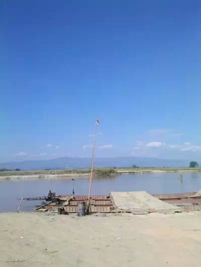 还是要把摩托车骑进船里,然后坐到对岸,瑞丽江。