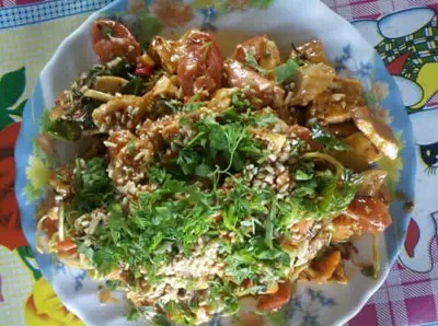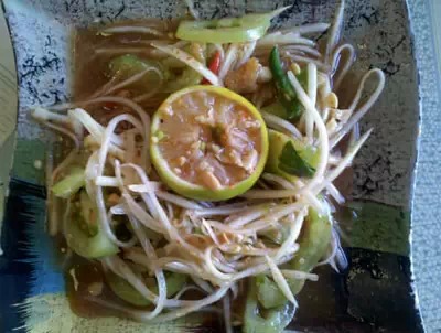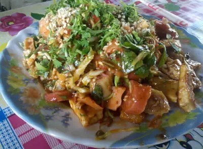 这是舂菜,也是酸酸的,柠檬味很足,缅甸和泰国的菜还是很像的。
