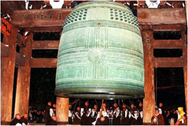 除夕夜,日本的寺庙里都要敲钟,共敲108下,以此为人们消除各种烦恼。因为每敲一下都需要等上次的钟声完全静下来才行,所以敲108次大约要持续1个小时。据说,敲钟时要在除夕夜零点之前敲107次,剩下的一次在零点之后敲,这样,就可以不再受过去一年的旧烦恼所扰,无忧无虑地迎接新年。