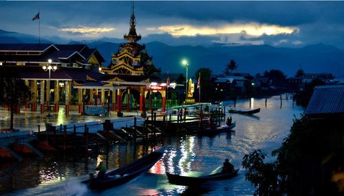 黄昏时分,位于Ywama村的Phaung Daw U庙,也是莱茵湖最大的庙,灯火辉煌照亮了整个天际。