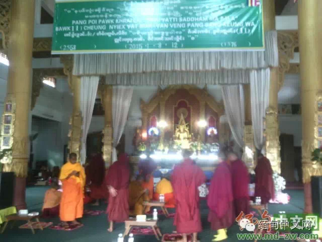 今天上午,在各地大佛爷的带领下,来自佤邦北部三县二区和南部地区以及景栋寺庙的310名小学僧(小和尚)齐聚首府大金塔参加本学期年终的文化等课目期末考试。