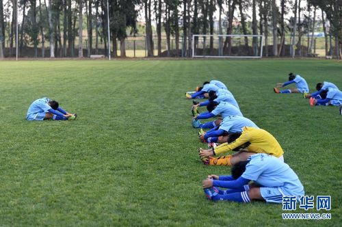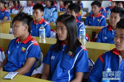 4月17日,缅甸体育代表团的足球运动员在云南海埂体育训练基地训练。 4月16日,缅甸体育代表团11支国字号队伍的198名运动员和教练员在云南集结完毕,以备战今年6月在新加坡举行的第28届东南亚运动会。此次来云南集训的缅甸国家队包括田径、自行车、击剑、男子篮球、女子足球、斯诺克等。据介绍,在2013年,中国政府与缅甸政府成功实施了第27届东南亚运动会技术合作项目,在双方共同努力下,缅甸队取得了团体总分第二名的成绩。为帮助缅甸备战第28届东南亚运动会,中国政府再次实施了缅甸国家队来华训练技术合作项目。 新华社记者胡超摄