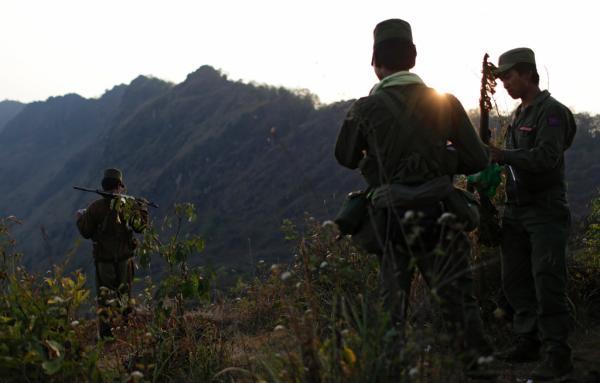 2015年3月10日,缅甸果敢,同盟军某营战士山脊上注视缅甸政府军的动向。
