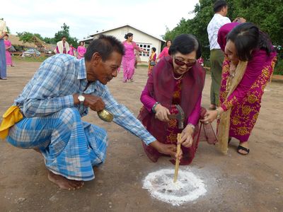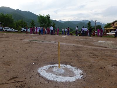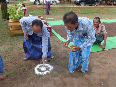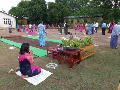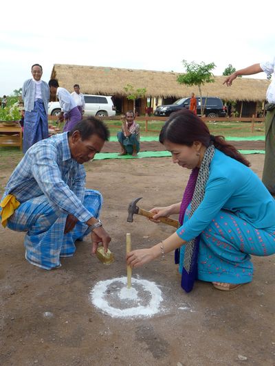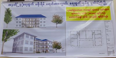 华人组织曼德勒金多堰慈善总会及金多堰妇女慈善会,为位于仰金山脚耶特寺庙,捐建一所三层教学楼,今天早上凌晨6:00时,在耶特寺庙举行奠基仪式。中国驻曼德勒总领馆靳仪鳞副总领事、曼德勒著名侨领、金多堰慈善总会永远荣誉主席周天凤女士、金多堰慈善总会会长李祖才先生、慈善总会副会长福建同乡会会长黄鹏飞先生、广东同乡会会长麦泉富先生、多省同乡会副会长谢世祥先生、金多堰妇女慈善会主席李菊芳女士、曼德勒福庆孔子课堂中方主任何林教授、李祖清校长、曼德勒金多堰慈善总会及金多堰妇女慈善会各位施主、耶特寺庙住持高僧及寺庙学校师生近百人参加了仪式。