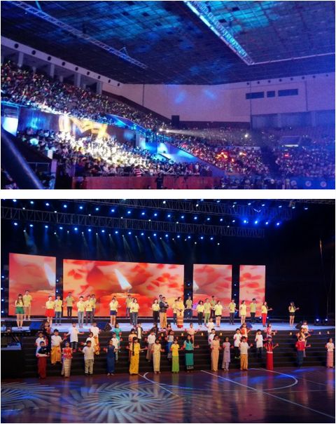 为了支援缅甸灾后重建,加深两国友好,中国-缅甸友好协会和缅甸-中国友好协会于 9 月 27 日联合在仰光都温那体育馆举办了“关爱缅甸”大型赈灾义演晚会。