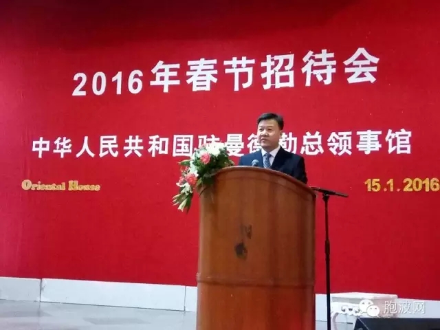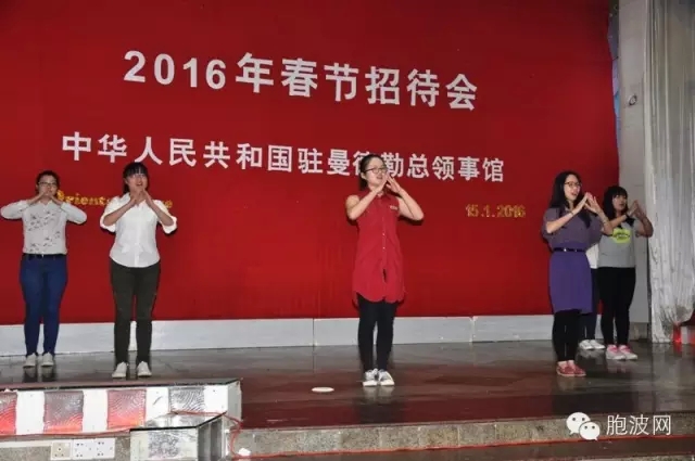 2016年1月15日,中华人民共和国驻曼德勒总领事馆在曼德勒东方屋大酒店举行2016年春节招待宴会,来自腊戌、东枝、彬伍伦、望濑、实皆、抹谷、迪波、皎脉、密支那、八莫、大其力、果领等缅北地区侨团领导,以及曼德勒地区的云南、福建、广东、多省、华侨妇女联谊会、果敢联谊会、中小学校校友会、老人康乐中心、远征军等社团领导、中国留学生、曼德勒各华校领导、教师、学生400余人参加了招待宴会,一同欢庆中国传统佳节。