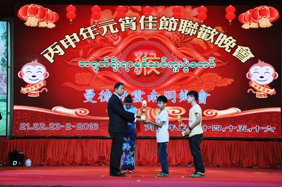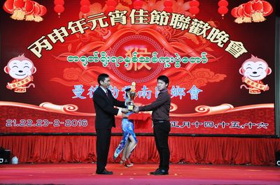 23日,下午5:00时,举行文艺歌舞比赛及篮球、乒乓球、象棋比赛颁奖典礼,向得奖者颁发奖盃及奖金。典礼上尚兴玺理事长致词表示举办元宵文艺晚会一方面是传承民族传统文化,一方面是为曼德勒各同乡之间搭建相聚之平台,团结起来,我们云南同乡会端木相依、守望相助,兴办华文教育,努力致力于缅华社会的生存发展,与当地人民和睦相处,努力促进中缅交往事业,为缅中友好添砖加瓦。