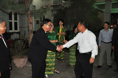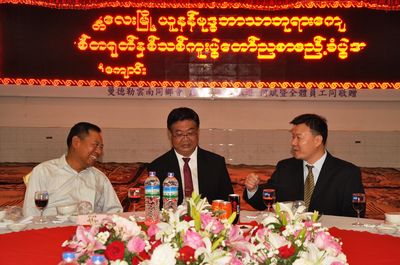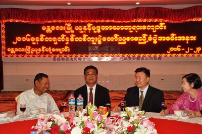 21日,下午5:00时,曼德勒云南同乡会尚兴玺理事长、副理事长、监事长及秘书长为文艺联欢晚会开幕式剪彩。