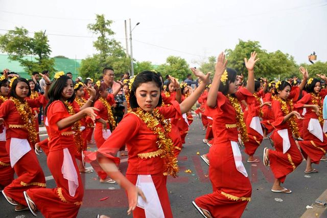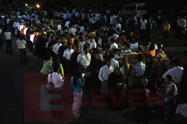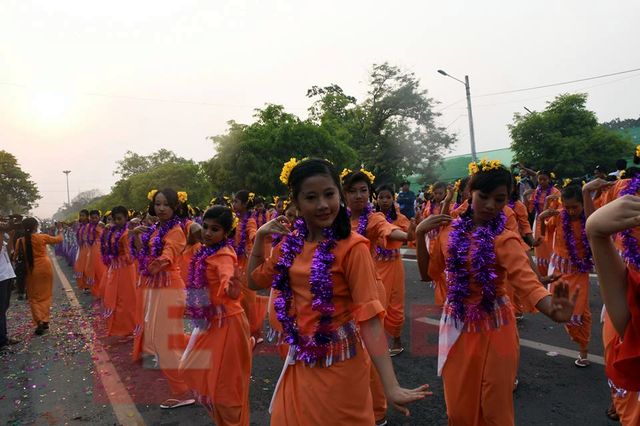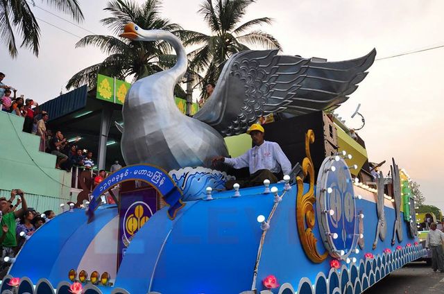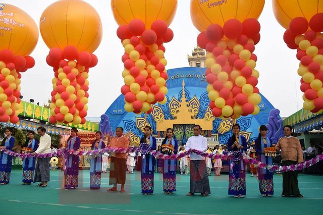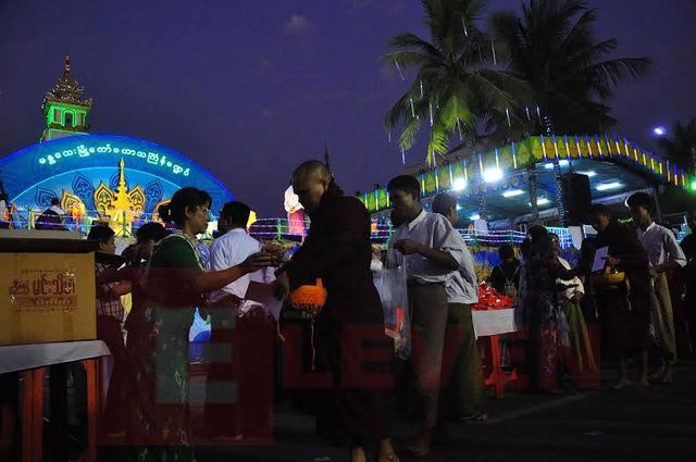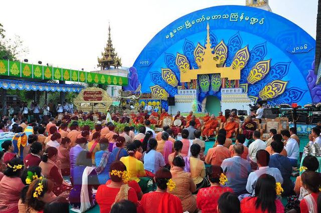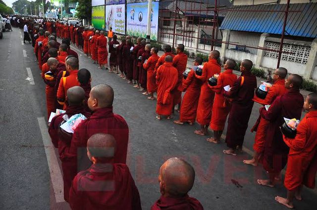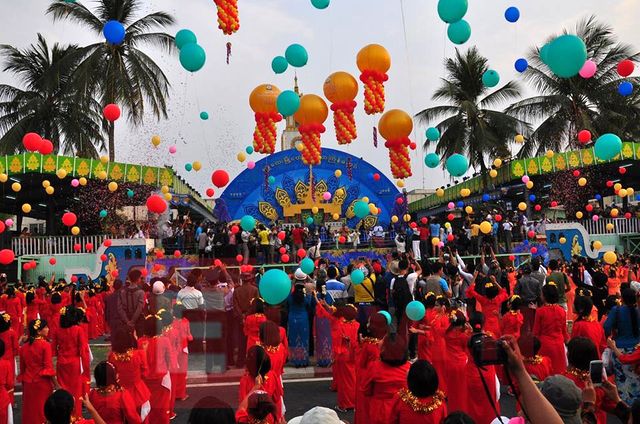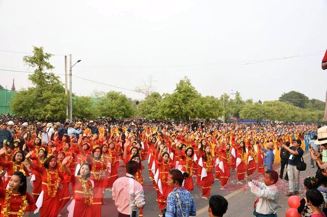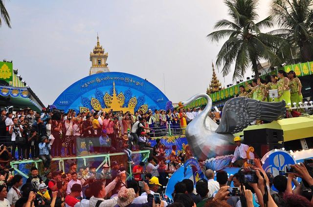 2016年4月12日凌晨曼德勒市民在中央泼水台举行布施活动,向1000名僧人和36位高僧布施晨餐。之后市长启动了泼水仪式,曼德勒老百姓沉浸在一片节日的欢乐海洋里……