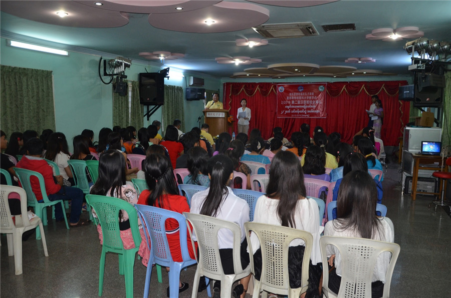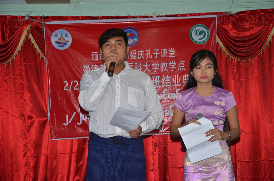 当地时间22日下午,缅甸传统医科大学教学点第二期汉语班结业典礼在曼德勒福庆孔子课堂多功能厅举行。