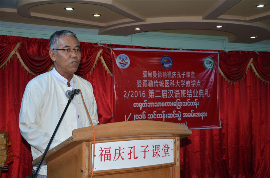 曼德勒省缅中友好协会主席吴博敏在结业典礼上说,友协在落实缅中友好工作时,对双方互相学习双方语言给予支持。只有相互懂得彼此的语言,才能加强缅中友协的工作,也欢迎大家为缅中友好做出努力。