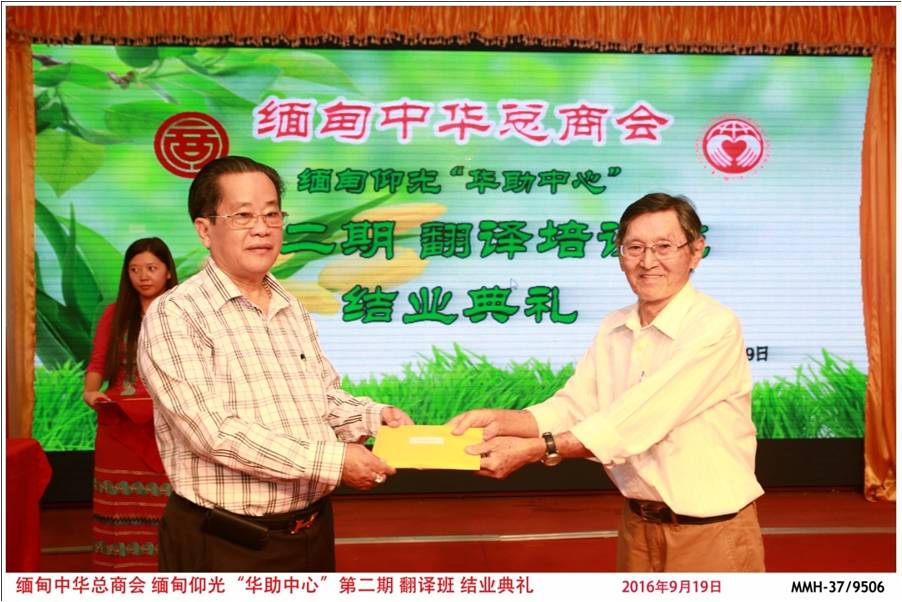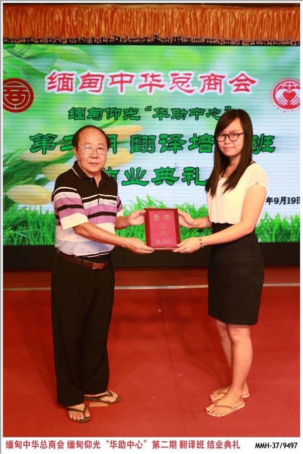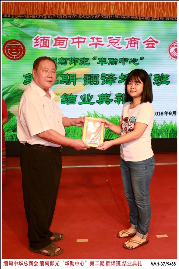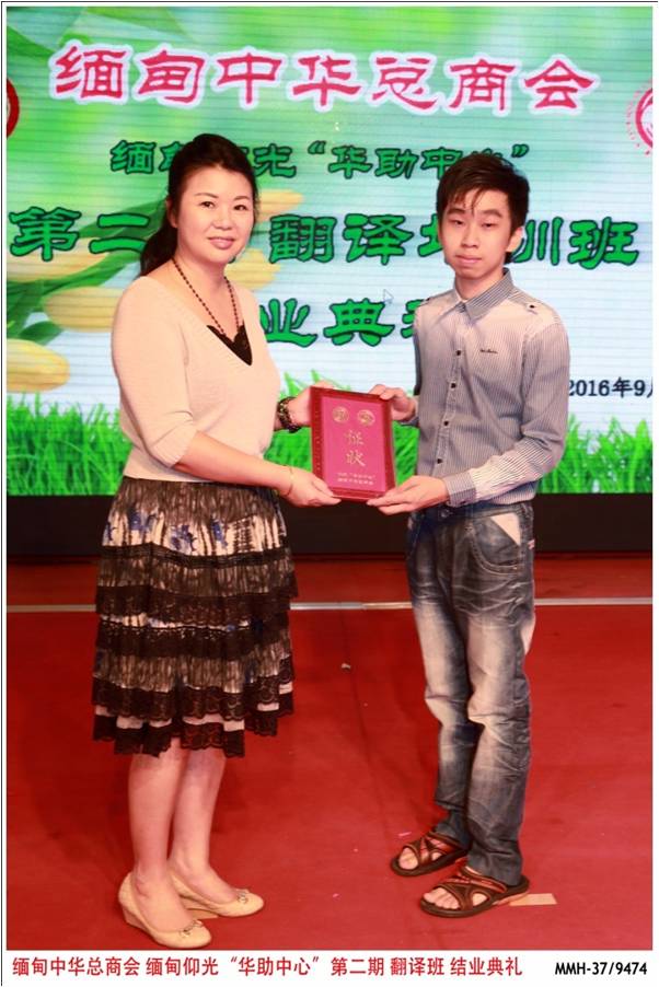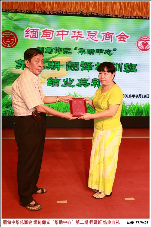 缅甸中华总商会 陈修桐副会长向学生颁发结业证状