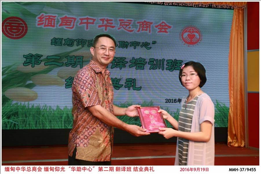 2016年9月19日早上10时30分,仰光华助中心第二期汉语培训班结业典礼仪式在缅甸中华总商会三楼大礼堂举行。