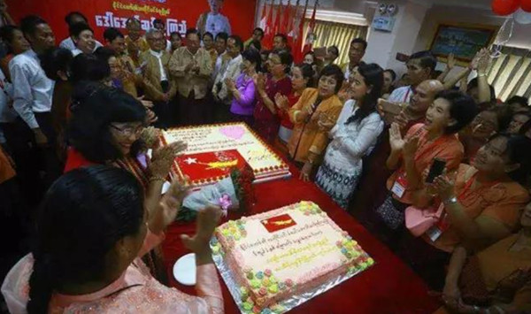 除了内比都,仰光市民盟党中央办公室也为她举行了寿星公不在场的庆祝生日会,众多党员成员都赶来参加。