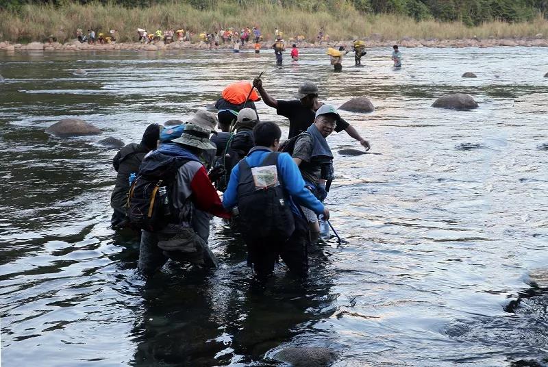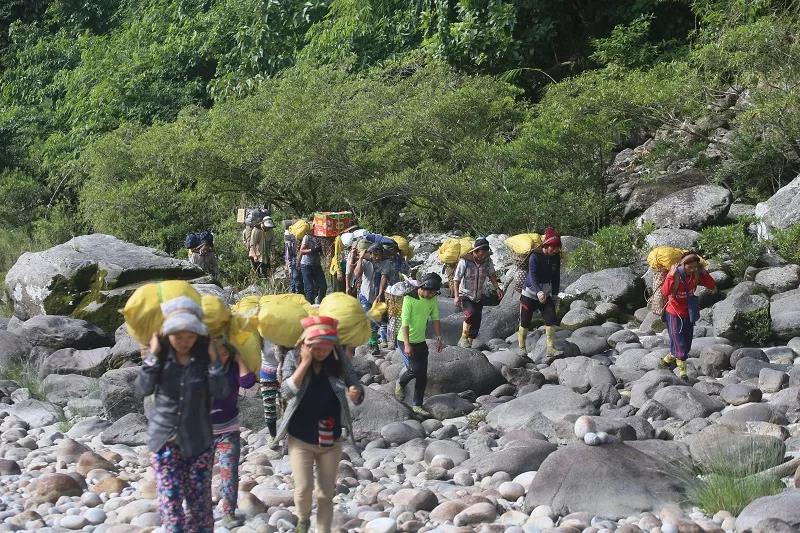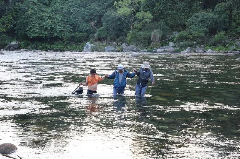 本次科考开辟的新线路,从葡萄往北,沿着迈力开江(Mali Kha)溯流而上,经过了一条名叫Ma dwei的支流,共停留五个营地,其中从4号营地到5号营地的路途是沿着江流滩地由不同大小的河流冲积石构成的“道路”一直溯江而上,由于石头参差不齐,负重前行异常艰辛。