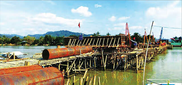 (笔者按:“若开邦的问题,只能靠发展来解决”,这是缅甸官方的一个看法。所以一个时期以来一直在抓紧各项建设,这其中交通也是一个主要的建设环节。只要交通便利了,不仅对工农业发展会有所帮助,就是对维护治安和稳定也将起重大作用。但若开邦北部河道纵横,公路交通甚为不便,现在抓紧修建桥梁,但愿这能迅速改变当地的交通状况,促进当地的发展。)