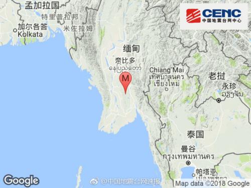 缅甸气象和水文局今天发布消息说,地震发生于当地时间0时56分,震中位于勃固省漂市西南约27公里处。