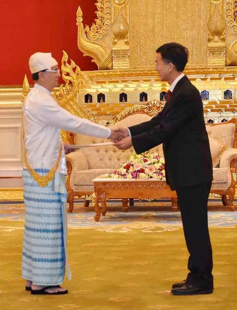 杨厚兰大使向时任缅甸总统吴登盛递交国书