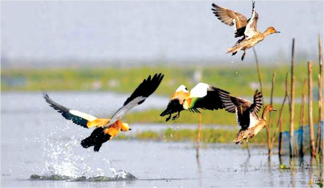 这些地区中,最先来报到的候鸟为野天鹅(Greylag goose)、亚洲鹬(Asia openbill)、鸳鸯、凤头麦鸡(Grey headed lapwing)、白颊鴒(White wagtail)及其他珍稀鸟类。据统计,在伯勒湖地区栖息的水鸟有37种,其他鸟类7种,鱼类8种。而实地调查研究时,发现有水鸟30种,其中来过冬的候鸟11种,地区鸟类19种。