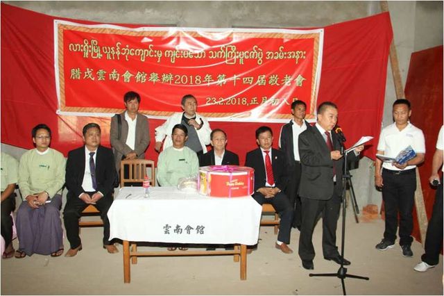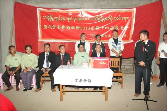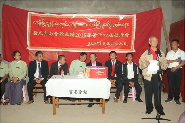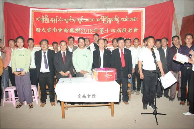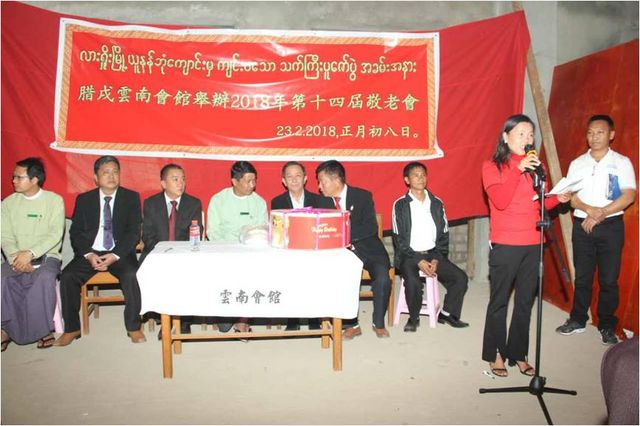 敬老会于2月23日下午2:30分在腊戌云南同乡会正在兴建的会馆大楼举行,云南同乡会荣誉会长杨立光,会长聂惟仁,常务副会长魏开智,副会长姜孟明、常启固、杨贵生、刘正昌、杨体良,监事长郑显聪,以彭国美为首的妇女妇女会姐妹,各位理、监事,恭敬地邀请老龄同乡入会,向他们表达最崇高的敬意和慰问。敬老会由杨贵生副会长、央正礼秘书联袂主持,杨贵生副会长兼任缅文翻译。