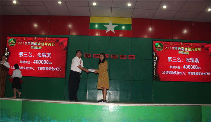 文体活动颁奖典礼由幼稚园余波园长主持,为在今年元宵节文体比赛中获奖的同学颁发了几万到几十万不等的奖金。文娱比赛中,传统舞蹈第一名《茉莉花》的苏瑞敏、晏柔彤、李岱庭、常定贤、鲁德丽、李明珠、姜吉蕊、美相、孟磊、杨宝琴、尚清菁、杨薰薰、吴佳佳、毛建星、李翠芝、马新爱、赵叶新、张瑞琪、李娅婷、汤彩娇、汤彩霞、杨谨慈、杨玉珠23位表演者获得奖金78.5万缅币;民族舞蹈第三名的《隆达梅朵》的杨建馨、玉芬、贾嘉玲、曹娅睿、杨新好、王恩龄、鲁雨菲、尚利娜、官芹爽、汤燕君、李明月、李娅秋、陈国松、陈生蕊、刘佩淇、尚利株、尚明明、杨春玲、何安平、李映和20位演员获得奖金58万缅币;少儿舞蹈《拍拍手》的杨仕君、黄正琳、玉洁、相玉静、陈馨怡、玉芳、杨贵媛、陈国江、尚应欣、王箐、杨于萱、杨凯妮、毛家美13位小演员获得奖金16万缅币;歌唱比赛第三名的张瑞琪同学获得奖金40万缅币;体育比赛中,乒乓球比赛获少年组和青年组单打冠亚军、青年组双打亚季军的宝大伟、蒋仁祐、阙开豪、杨恩灿四位同学分别获得奖金20万缅币、15万缅币、15万缅币、10万缅币;象棋比赛少年组斩获冠亚军的匡家楼、常定旭两位同学,分别获得奖金20万缅币、16万缅币,包揽象棋青年组前四名的高俊武、匡家卓、匡家建、杨明淮四位同学,分别获得奖金24万缅币、20万缅币、16万缅币、12万缅币。颁奖典礼上,同学们不断为获奖同学报以热烈的掌声。
