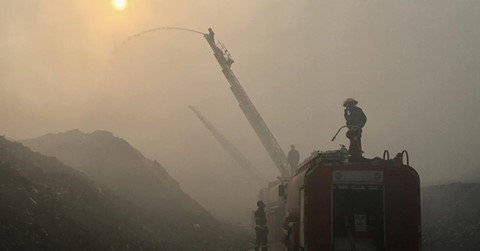 仰光西部莱达雅市镇腾平垃圾场自4月21日发生火烧以来,至26日已是第六天,在消防队员及国防军官兵共同协力灭火,已基本控制火势。24日中午,仰光军区部队派出150名官兵参加灭火工作,并调集军区三台抽水机、4500英尺的4英寸水管、7辆运水车,以及之前原有150名消防队员连日灭火,消防局出动12辆和12辆运水车等。腾平垃圾场面积约300英亩,此次火灾面积约100英亩,由于火灾面积大,垃圾堆高达20英尺,而且从垃圾堆深处着火,以及水源缺乏,给灭火工作带来极大困难。