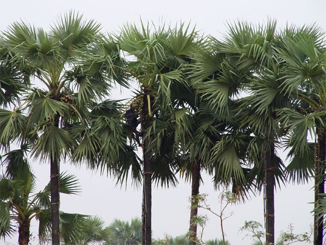 棕榈树是上缅甸的一道美景,说美景还不如说是大自然赠予我们的一项珍贵的礼物。种植棕榈树不需要化肥,不需要农药,它是能够自然生长的一种植物。在含有水份的土地上棕榈树15年就能长成为人们所用,干燥的土地上则要25年的时间。但一棵棕榈树的寿命却可长达百年,真是一种神奇的植物。