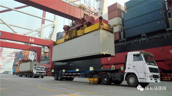 出口货物将安排在茵森钢铁厂前面的集装箱堆场(白印脑路)。到仰光以西港口的集装箱取件和运输将于上午11点开始。
