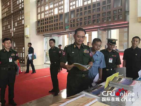 出席国庆招待会的缅甸嘉宾翻看缅文版中国图书