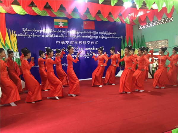 仪式上,洪亮大使还代表中国大使馆向奥耶漂中学捐赠了中缅友好奖学金、助学金和一批中文图书。该校学生为来宾表演了缅甸传统歌舞。