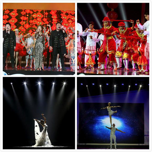 中缅两国歌手、演员和艺术家表演了12个节目,开场歌舞《相亲相爱》、联歌联舞《胞波情深》、影子舞《缅甸映像》、歌曲《共饮一江水》、舞蹈《雀之灵》、舞蹈《墨舞新韵》、歌曲《甜蜜蜜》、舞蹈《少女踢裙舞》、肩上芭蕾《东方天鹅》、歌曲《心空的翅膀》、结尾歌曲《中缅年歌联唱》使晚会高潮迭起,现场观众掌声不断,赞不绝口。