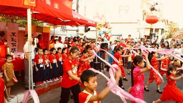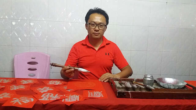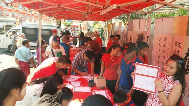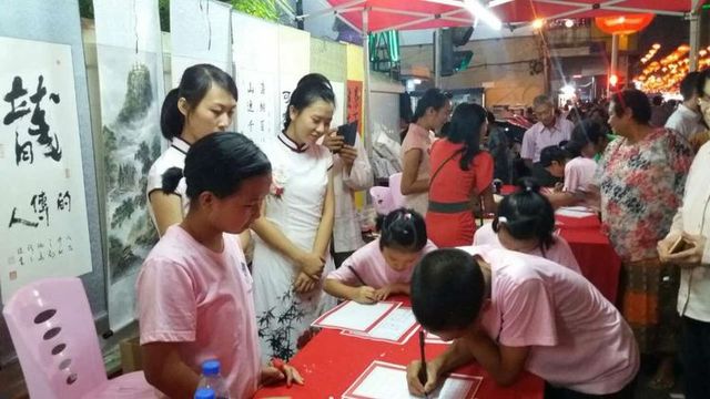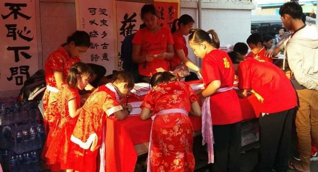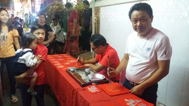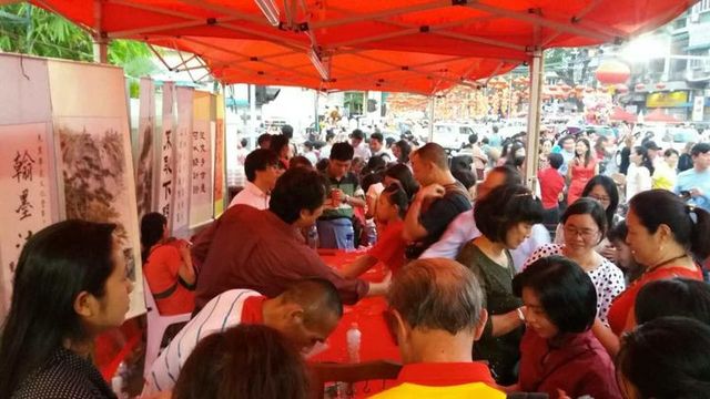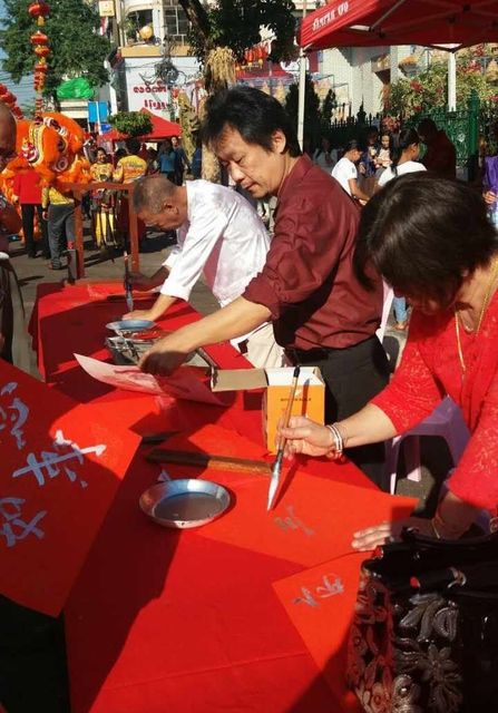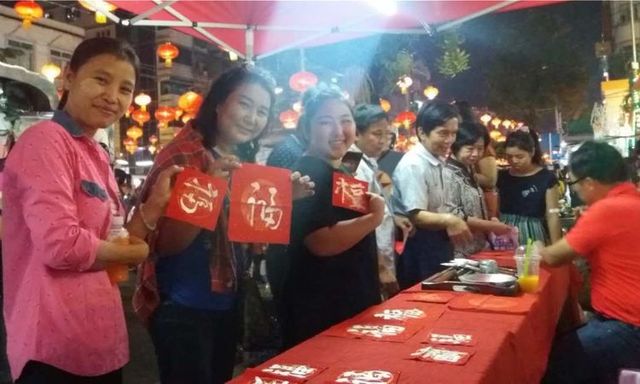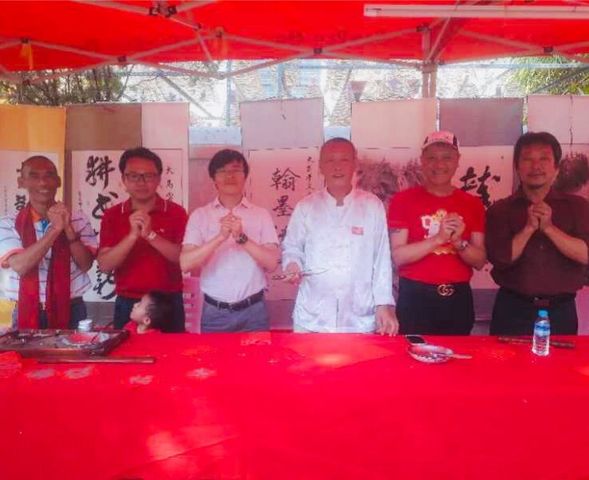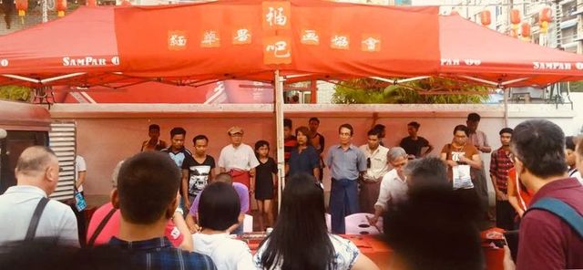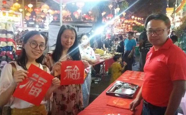 缅华书画协会同道腊月二十九日在仰光唐人街写福送福迎接己亥春节