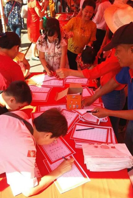 写福送福活动还增加了硬笔书法交流、汉服、唐装、旗袍、广场舞表演。