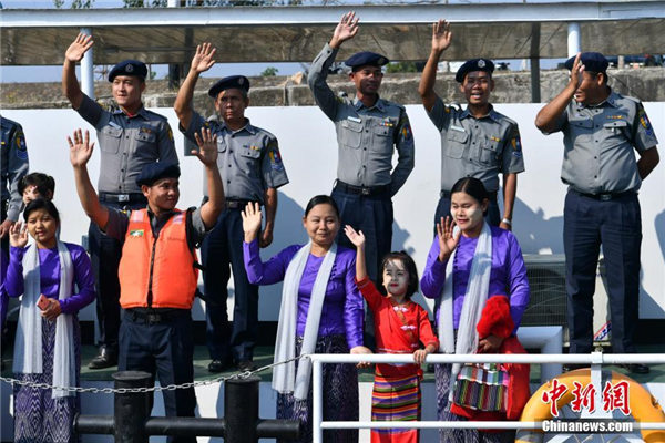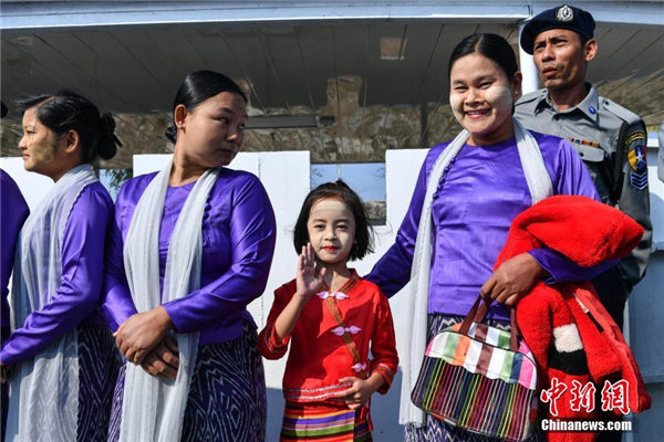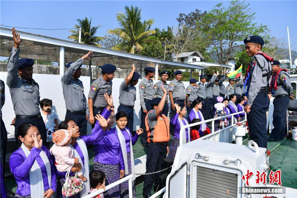 2月20日,缅甸民众送别缅方执法人员。当日,第79次中老缅泰湄公河联合巡逻执法队来到缅甸万崩码头,迎接缅甸执法艇及执法人员。当地民众相聚在湄公河边,扶老携幼送别亲人。中新社记者 任东 摄
