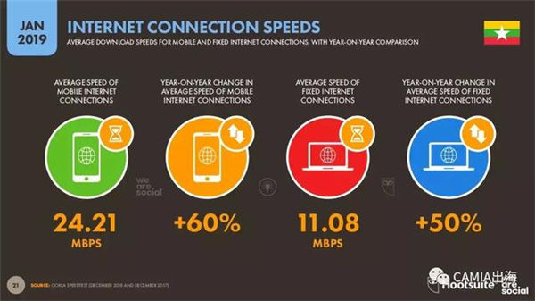 最近,研究调查公司WeAreSocial发布了包含东南亚地区在内的全球数字互联网使用最新调研报告(2019年1月最新版)。本期主要介绍东南亚地区缅甸市场的相关情况,具体如下: