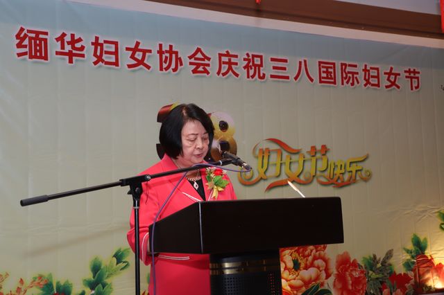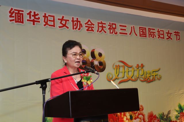 李为华主席对所有姐妹表达了节日诚挚的祝福,对常年关心支持妇协发展的各级领导、社会各界人士表示了衷心的感谢,对嘉宾们的到来表示了热烈的欢迎。她说,女性用爱心谱写了一曲曲家庭和谐之歌,新时代的女性,奋发进取,在各个平凡的岗位上做出了不平凡的业绩,为社会的进步做出了巨大的贡献,真正顶起了“半边天”!她还说,缅华妇协自成立以来,“温柔、贤惠、执着、奉献”是协会姐妹们的本色,“自尊、自信、自强、自爱”是她们的追求。妇协积极参加各项社会活动,慷慨解囊,扶贫救困,一直以来都致力于传承中华文化,出资出力创办了仰光第一所华文学校——缅华妇协教育中心,这是妇协呈现给社会的最大的成果,也是所有会员最大的骄傲!她用三句话总结了妇协和教育中心发展的历程“忆往昔,点点滴滴,桃李不言,下自成蹊;看今朝,桩桩件件,稳中求进,谱写新篇;展未来,日日夜夜,奋发图强,力创辉煌!”她希望协会所有的姐妹在以后平凡的生活中继续为社会大舞台增辉添彩。